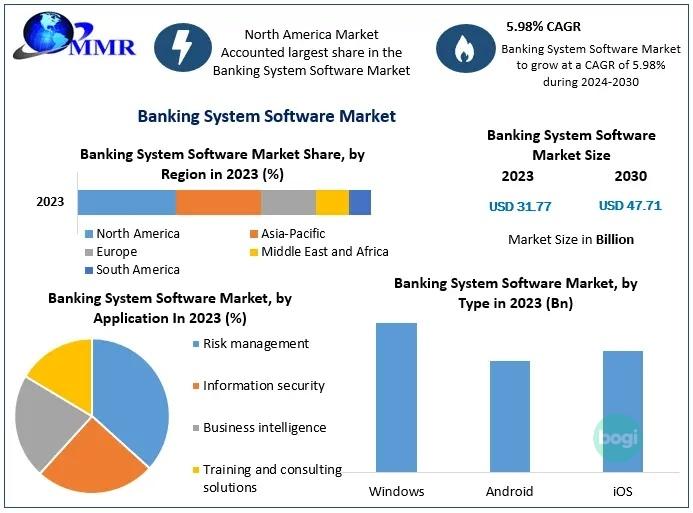 Anticipated Growth in Revenue: The Banking System Software Market size is expected to reach US$ 47.71 Bn in year 2030, at a CAGR of 5.98% during the forecast period.